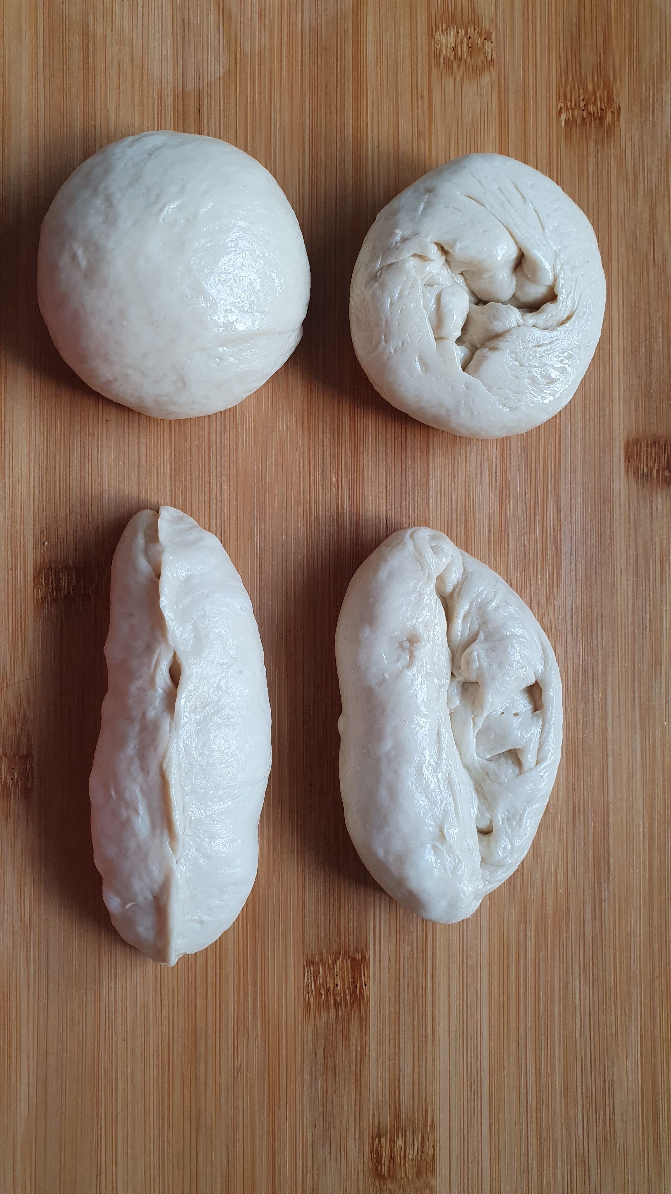 - Die Teiglinge locker rundschleifen und mit dem Teigschluss nach unten für etwa 10−15 Minuten entspannen lassen.