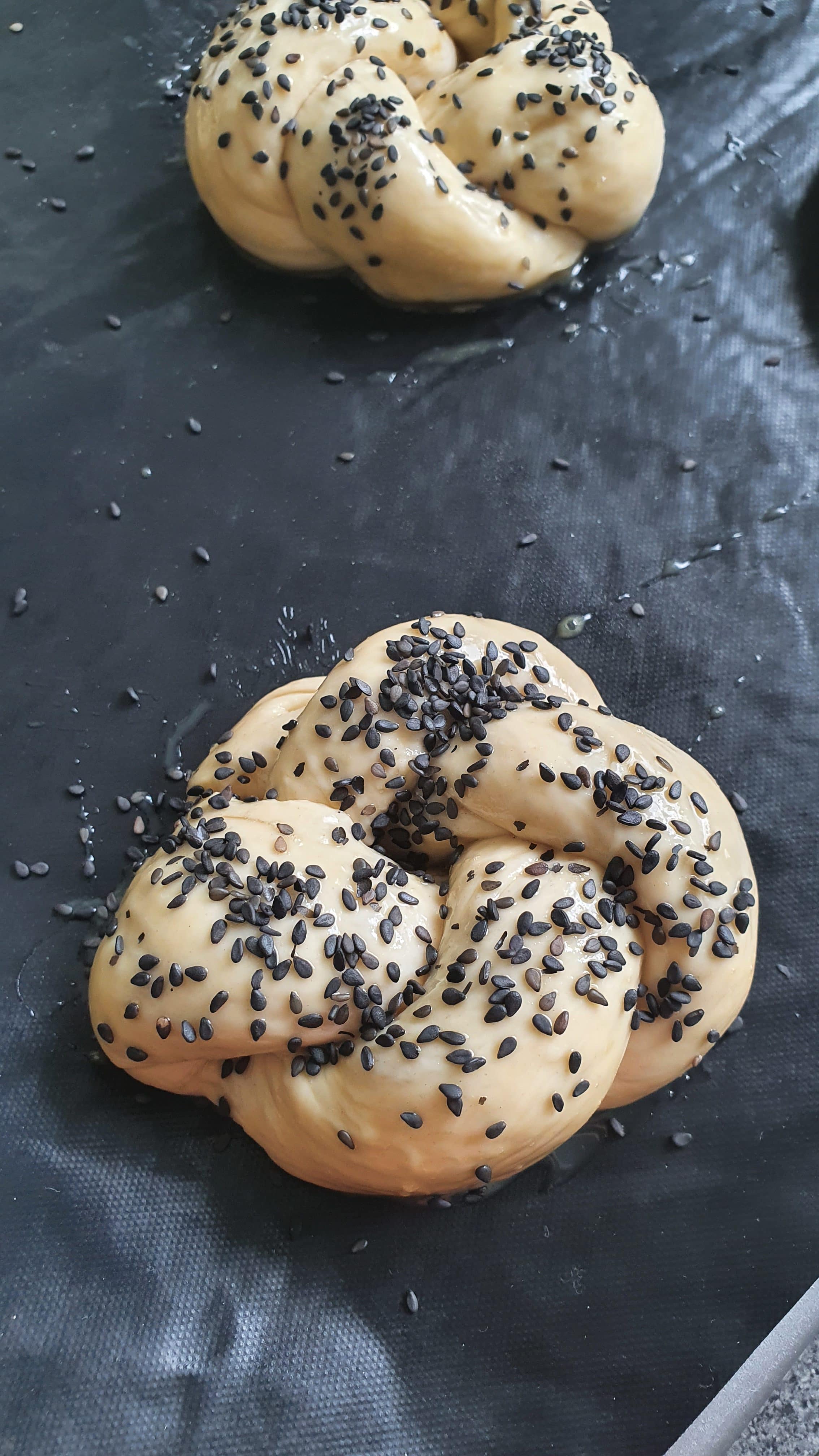 - Danach mit Schwarzkümmel und/oder Sesam bestreuen.