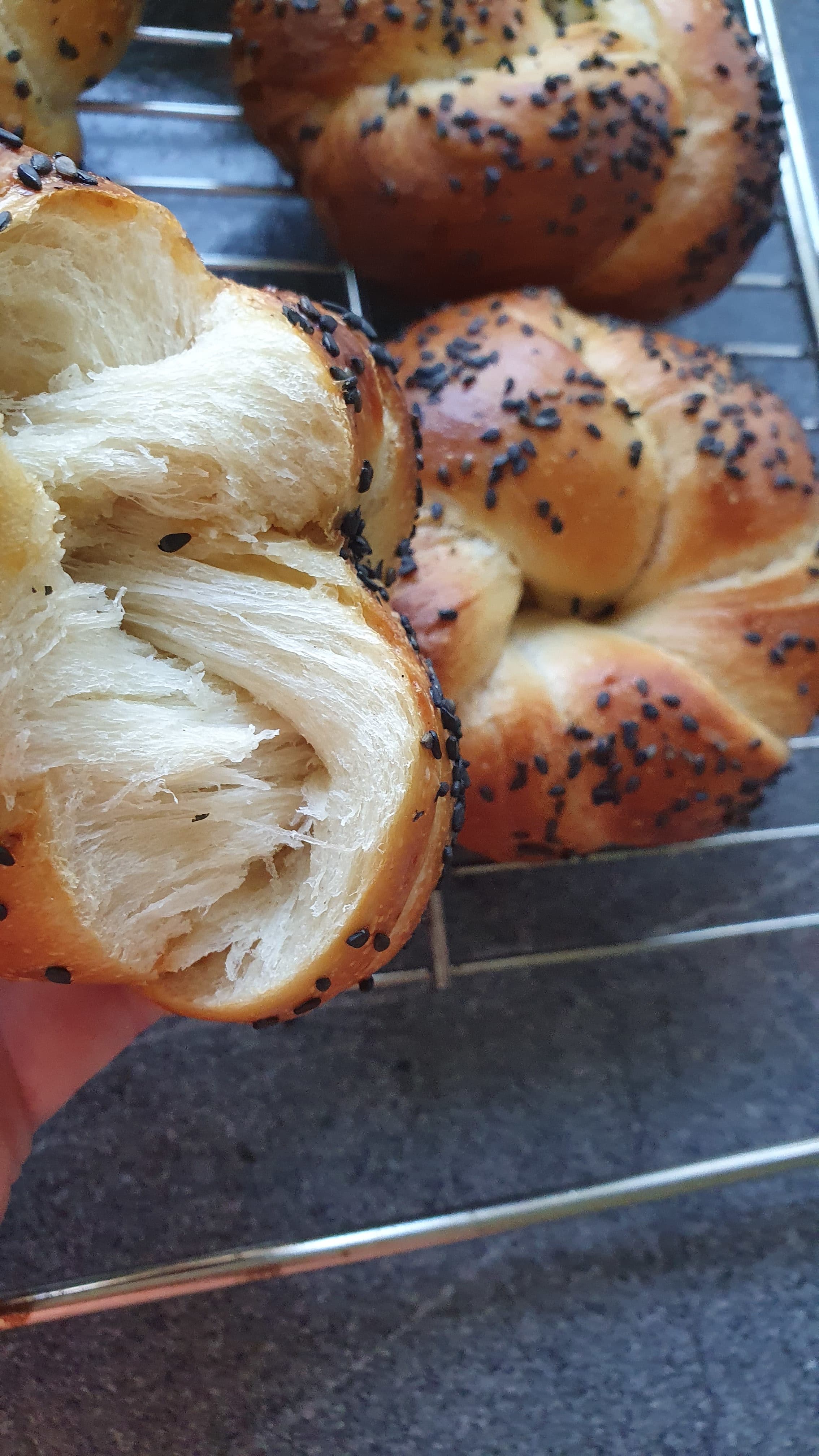 Açma (gesprochen Atschma) ist laut Wikipedia ein ringförmiges Hefeteig-Gebäck aus der türkischen Küche, das einem Hefezopf oder Brioche ähnelt. Es gibt viele verschiedene Varianten von Açma. Typischerweise soll der Teig wohl aus Weizenmehl, Butter, Milch, Backhefe, Zucker und Salz bestehen. Mir sind bisher allerdings nur Rezept mit Öl statt Butter über den Weg gelaufen. In die COOKIE-Variante kommt zudem noch Joghurt mit hinein. Der fiel mir nämlich kurz vor der Teigzubereitung in die Hände und wanderte so direkt mit in den Teig. Ich mag Joghurt in Brot- und Brötchenteigen total gerne, insbesondere wenn kein Sauerteig enthalten ist. Das Wort açma stammt wohl von dem türkischen Verb „açmak“, was soviel wie öffnen bedeutet.