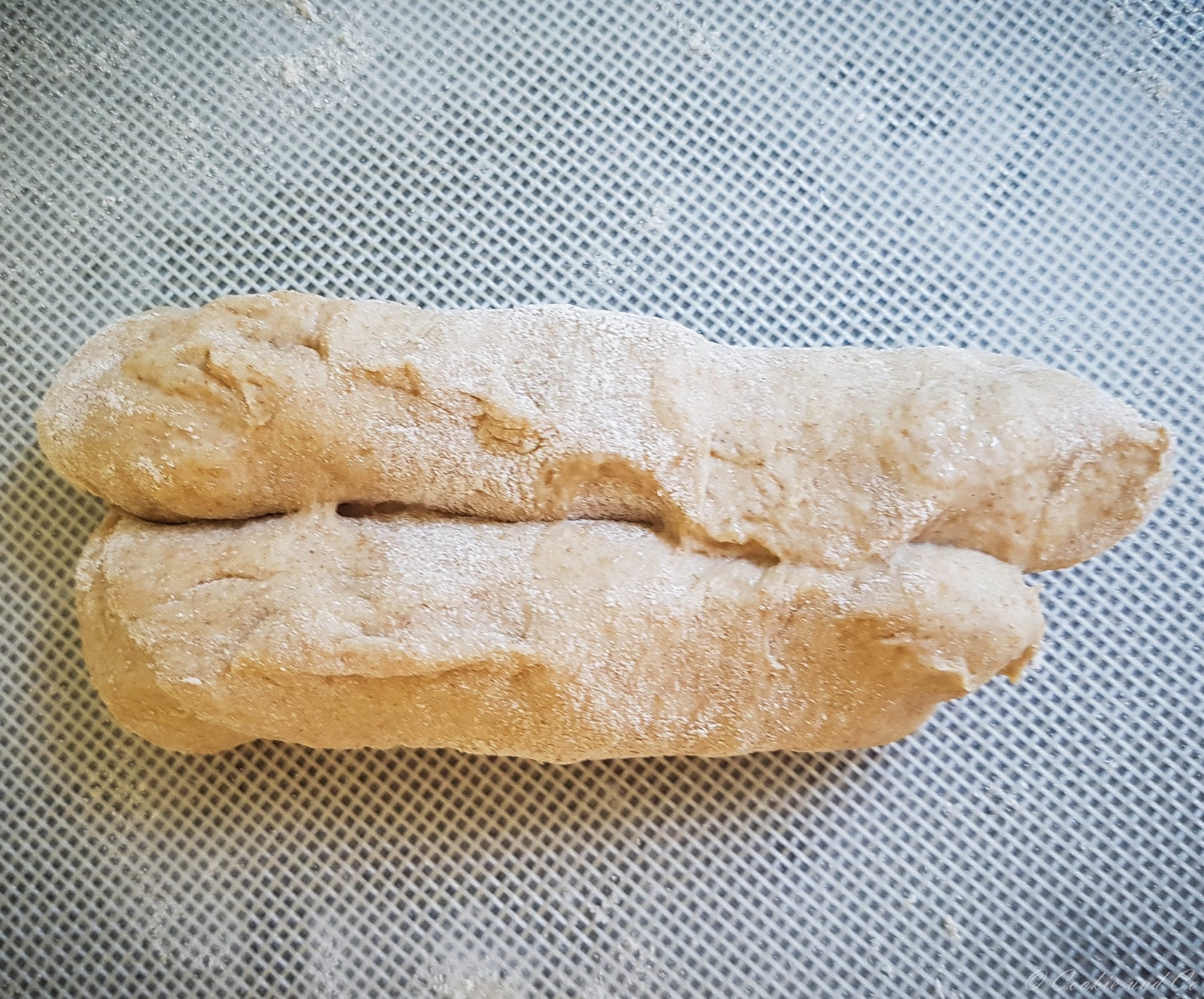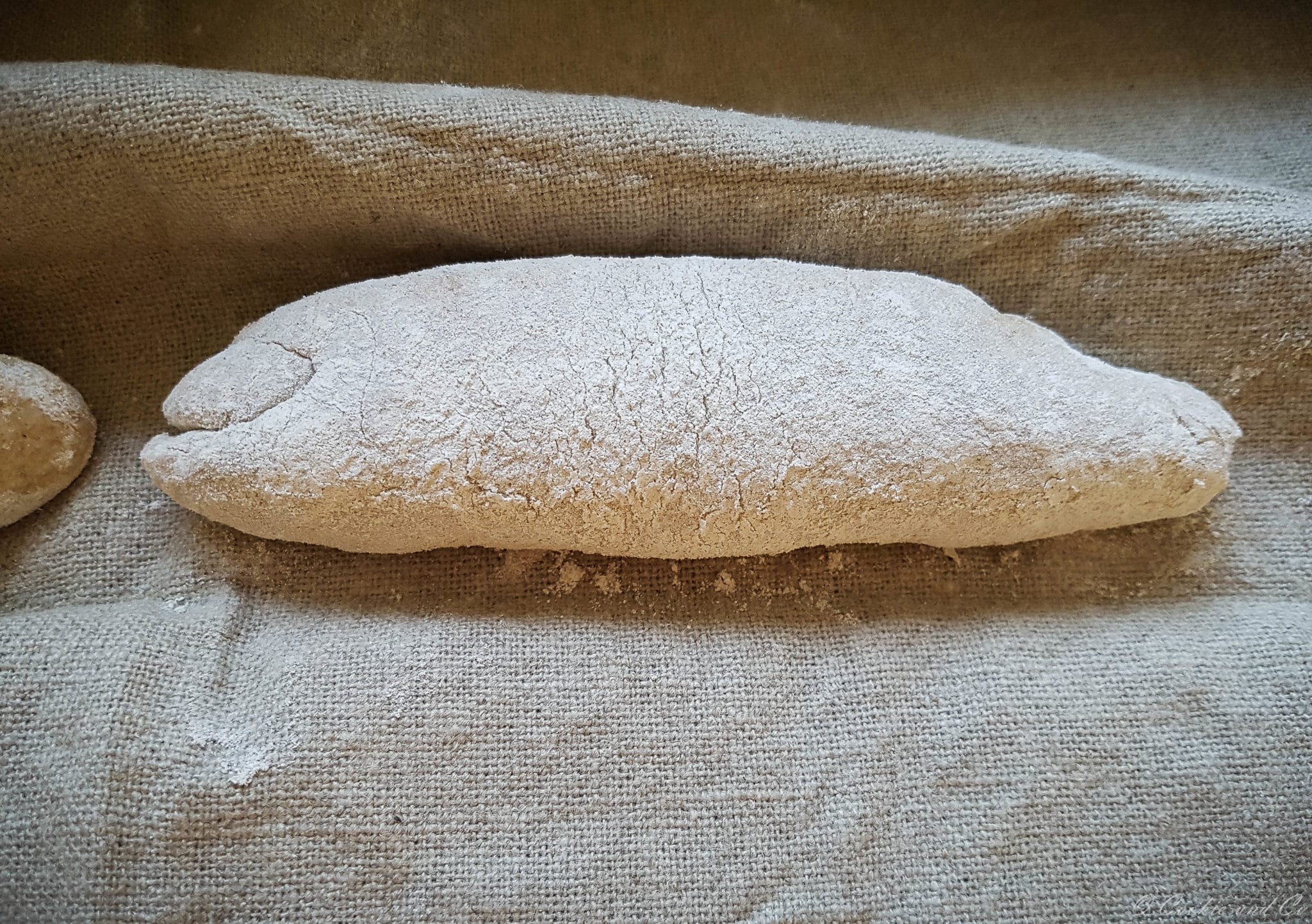 - Die Teiglinge mit dem Schluss nach unten (also mit der glatten Seite nach oben) in ein Bäckerleinen (oder festes Geschirrtuch) legen und zwischen den Teiglinge den Stoff etwas hochziehen, damit diese leicht gestützt werden.