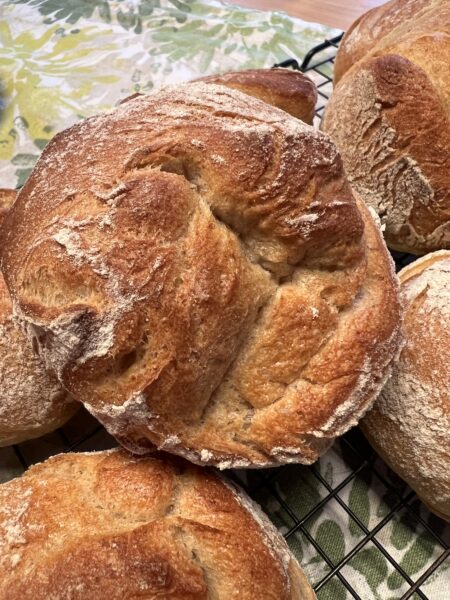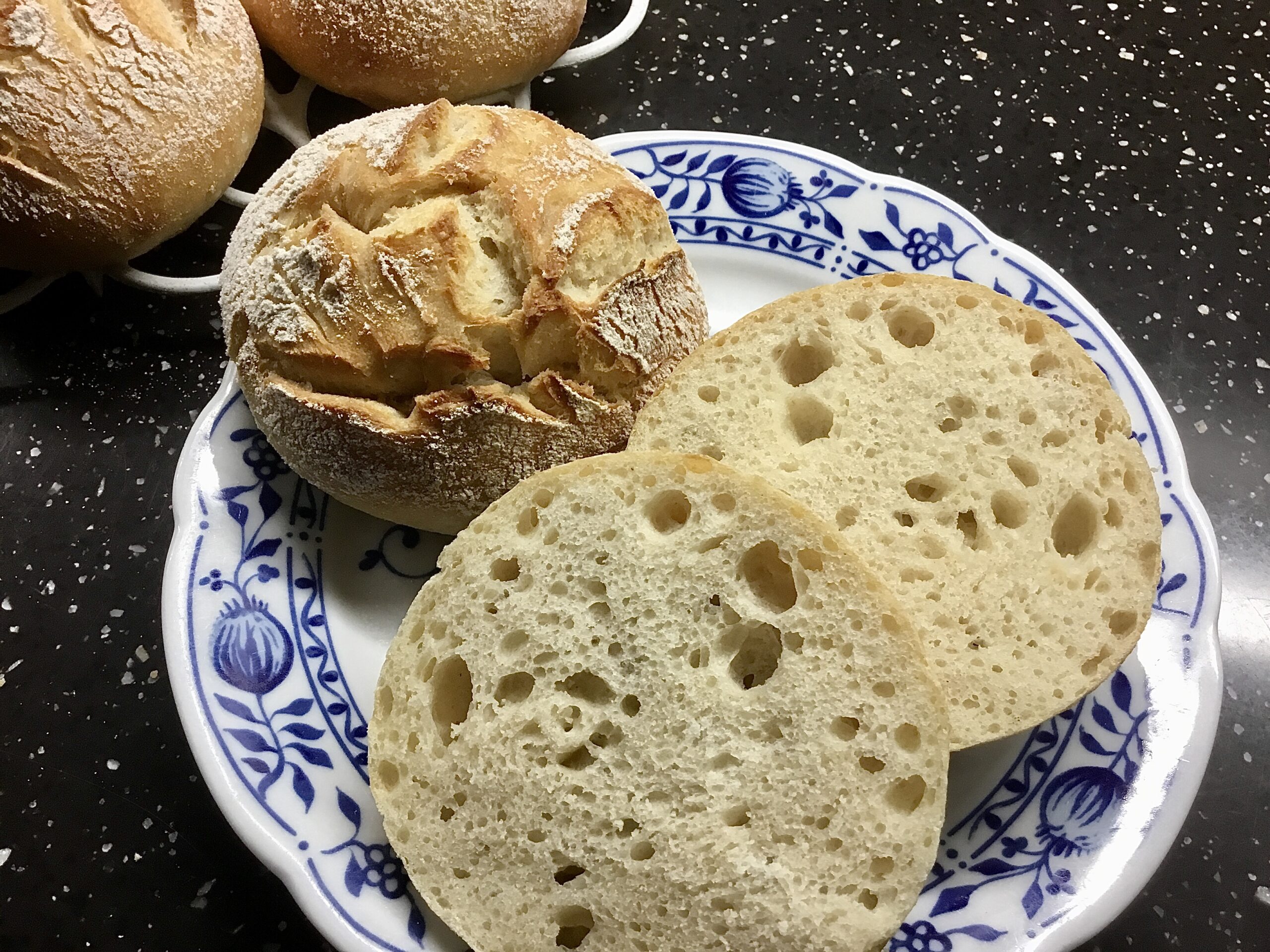 Vor ein paarTagen hatte ich ja Deine Weltmeisterbrötchen gebacken und nun hat mich das Backfieber erwischt…gestern den Teig mit Übernachtgare angesetzt, heute gebacken und vorhin mit einer Tasse Kaffee das erste „Julchen “ genossen….toll, die Stückgare dauerte nur ca. 50 min und der Teig war wieder bisschen weich, so konnte ich die Brötchen nicht so gut formen,aber egal, der Geschmack zählt !!!!!!