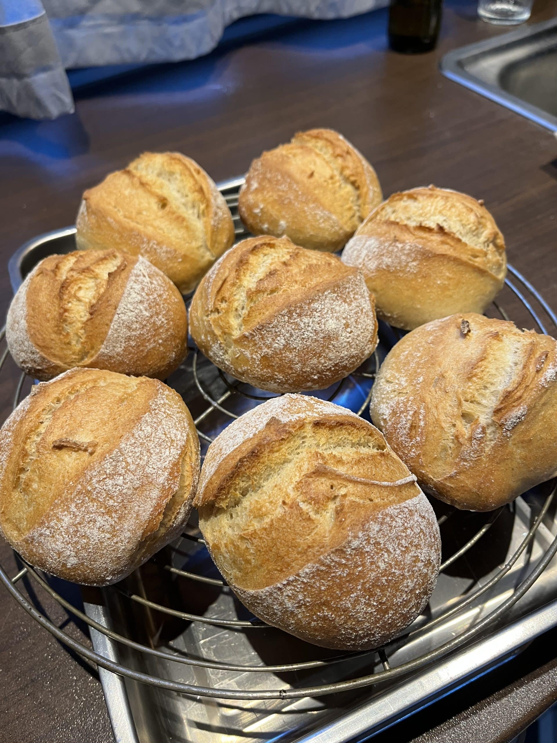 Übrigens, d eine neuen no knead Brötchen sind super toll. Mehl, kleine Waage, Vitamin C, Backpapierbögen und Thermometer habe ich mitgenommen und nun werden sie im Urlaub gebacken. Mal sehen, wo das klappt…..