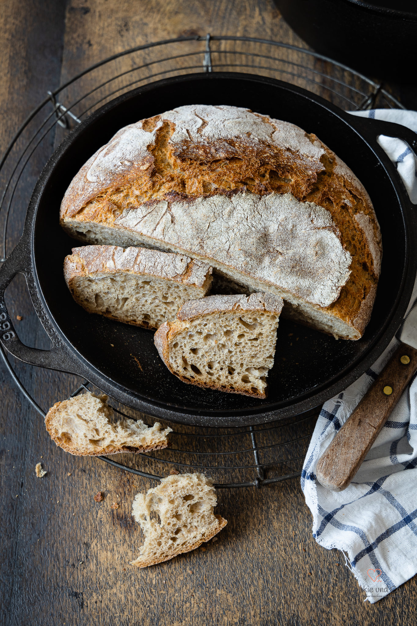 Vielen Dank für dieses Rezept. Das Brot ist sehr gut geworden, aber es ist leider sehr flach ausgefallen, obwohl ich es im heißen Topf gebacken habe. Kann es sein, dass es vor dem Backen zu lange gegangen ist? Beim reingeben, ist es etwas in sich zusammen gefallen.