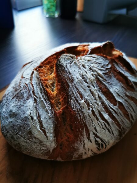 Die Jule ist, nach dem Ausprobieren verschiedenster Rezepte, das leckerste und einfachste. Es ist mittlerweile unser Hausbrot geworden in allen erdenklichen Variationen. Mit höherem Anteil an Vollkorn oder Roggen, mit Brüh- oder Quellstücken aus Saaten, Nüssen, Schrot oder Kartoffelflocken…