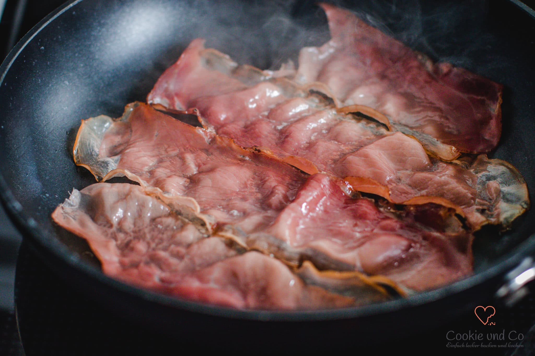 - Die Toastscheiben leicht antoasten (nach Wunsch gerne auch stärker).
