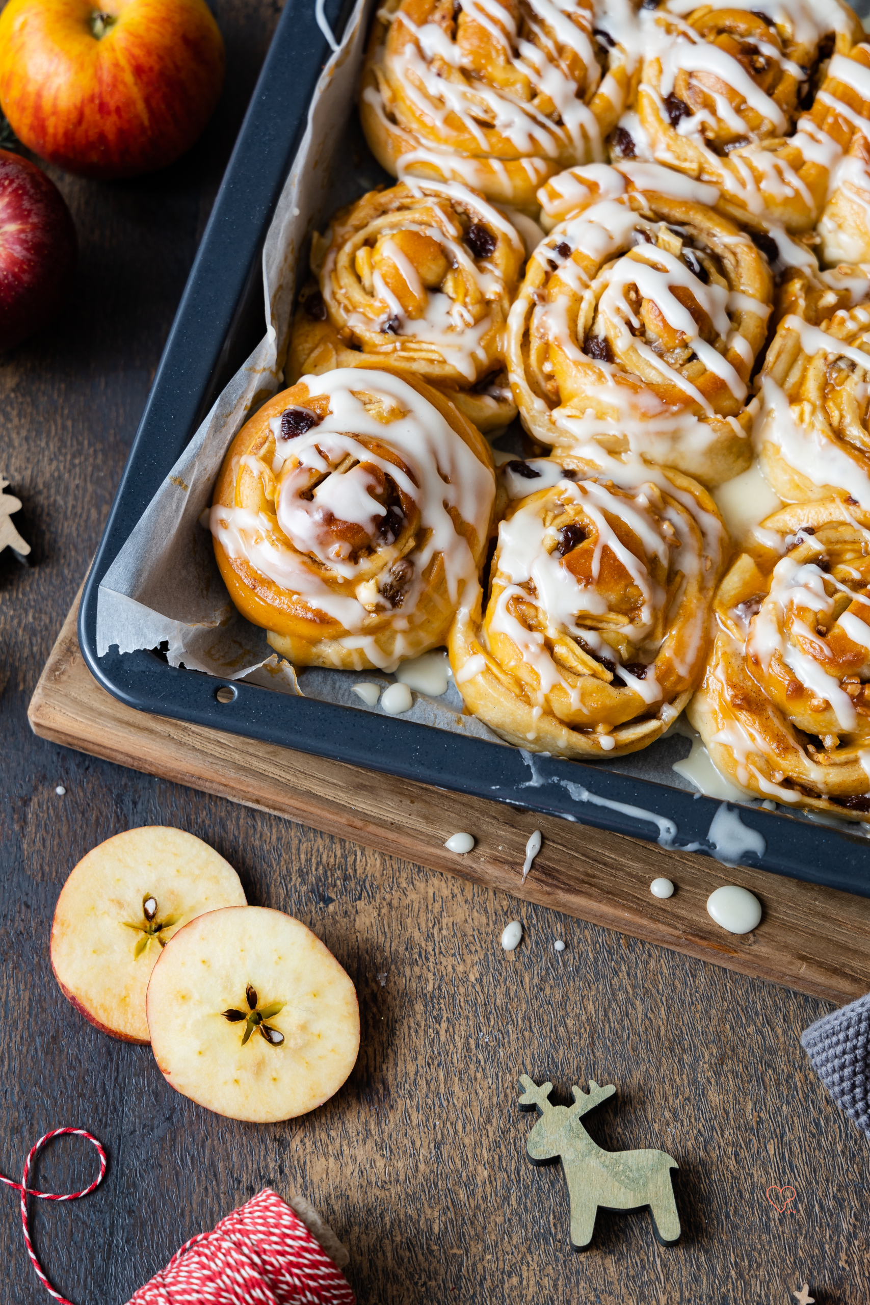 Ich finde die Kombination aus der Aprikotur und etwas Zuckerguss jedenfalls super lecker. Nun bin ich gespannt, für welche Variante du dich entscheidest und wünsche dir viel Spaß beim Nachbacken meiner Bratapfel-Zimtschnecken! ♥