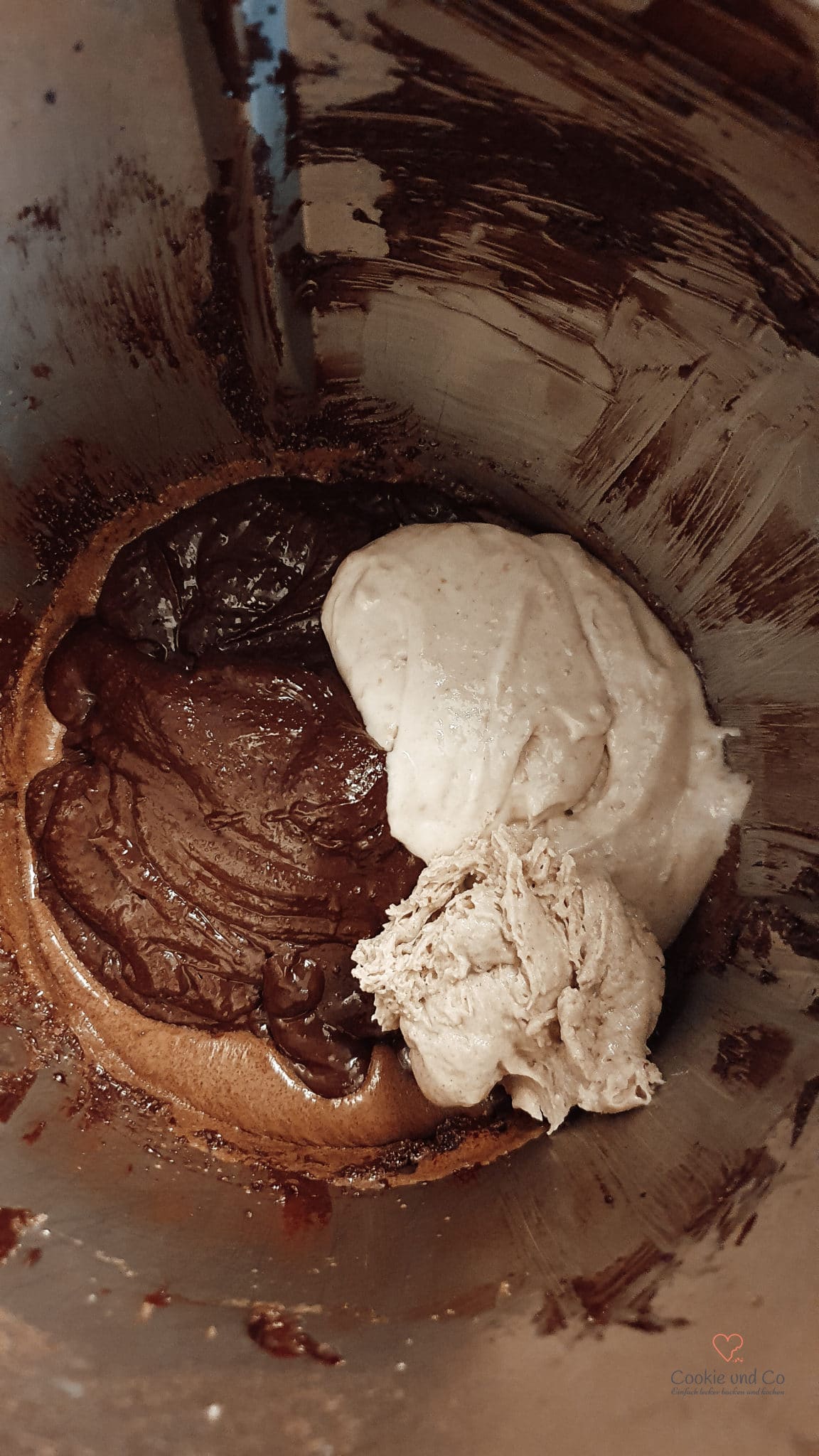 - Zum Schluss das Kakaopulver mit dem Backpulver mischen und unter den Teig heben (ohne Sauerteig hier das Mehl hinzufügen).