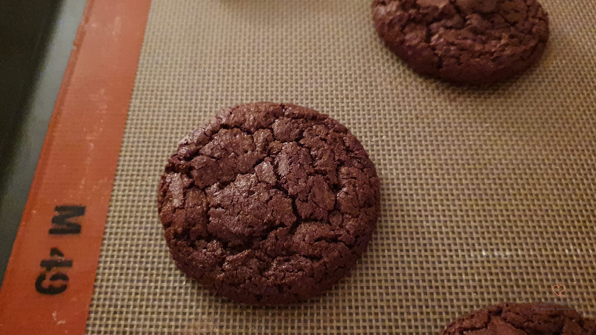 - Anschließend im vorgeheizten Backofen für etwa 10−14 Minuten backen (je nach Ofen). Nicht zu lange backen, da die Schokolade im Teig schnell verbrennt.(Bei Ober-/Unterhitze müssen die Cookies nacheinander gebacken werden.)