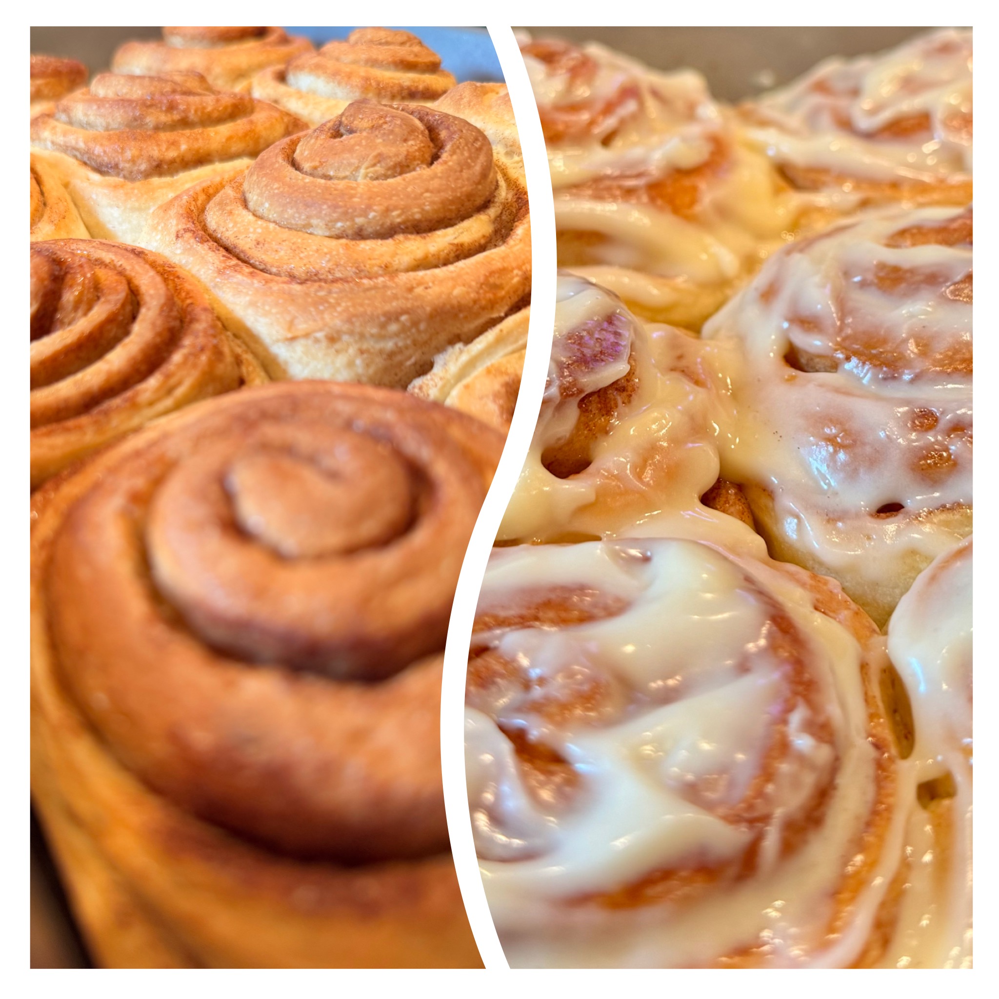 - Die lauwarmen Schnecken nach dem Backen mit dem Frosting bestreichen.Die erste Zimtschnecke noch lauwarm genießen.❤️
