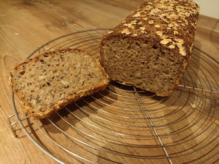 Suchst du nach einem unkomplizierten, aber dennoch unglaublich leckeren Brotrezept? Dann ist das Dinkel-Sauerteigbrot ohne Kneten genau das Richtige für dich! Mein Dinkel-Körnerbrot besticht durch seine sehr einfache Zubereitung und den nussigen Geschmack von Dinkelvollkornmehl, Haferflocken und Sonnenblumenkernen. Das Rezept ist super geeignet für Brotback-Anfänger und alle, die im Alltag unkompliziert gesundes Brot backen wollen.