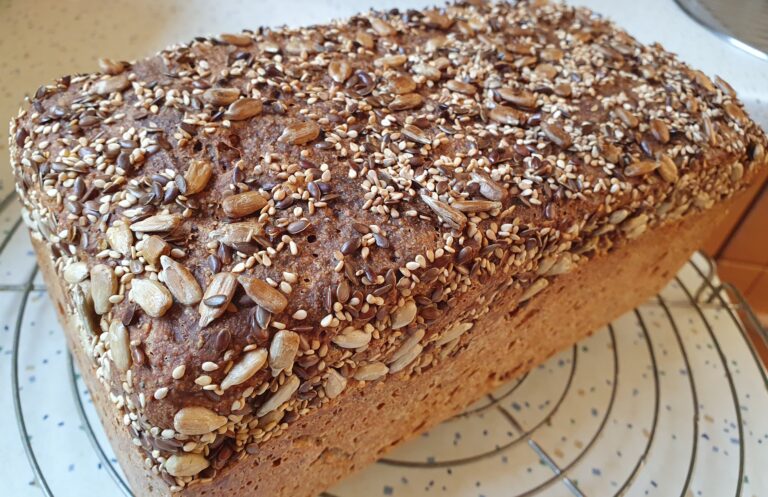 Wahrscheinlich benötigst du noch ’nen Schluck mehr Wasser. Du kannst aber auch die Flohsamenschalen weglassen bei Weizen, dann passt die Flüssigkeitsmenge wahrscheinlich sogar.