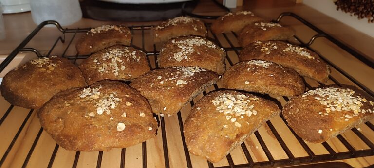 Wir mögen diese vollwertigen und gesunden Brötchen super gerne! Sie machen lange satt und sind mal eine willkommene Abwechslung zu weißen Brötchen. Wenn du Fragen zum Rezept hast oder mir dein Ergebnis zeigen möchtest, hinterlasse mir gerne einen Kommentar unter diesem Beitrag. Nun wünsche ich dir viel Spaß beim Nachmachen und gutes Gelingen!
