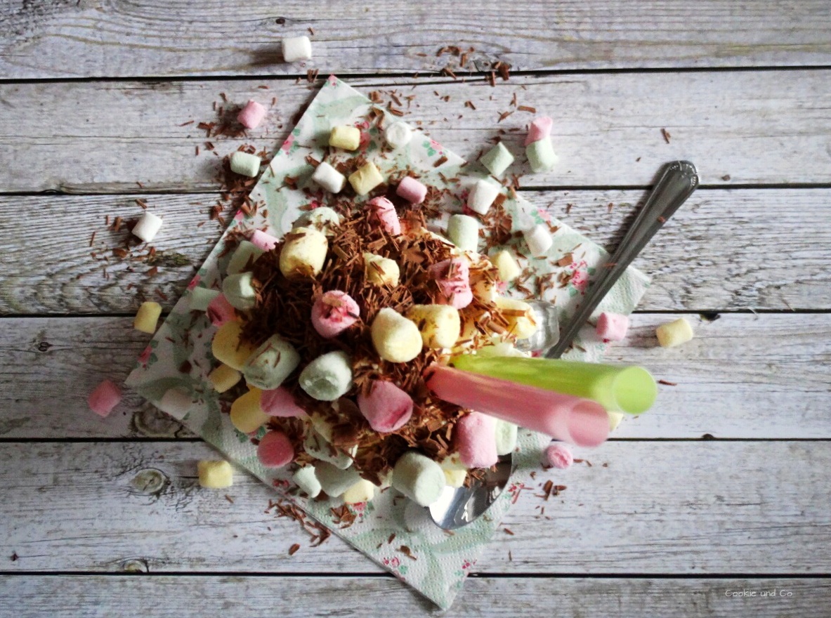 - Nach belieben mit Marshmallows, Schokoladenraspeln und gerne etwas Baileys verzieren.