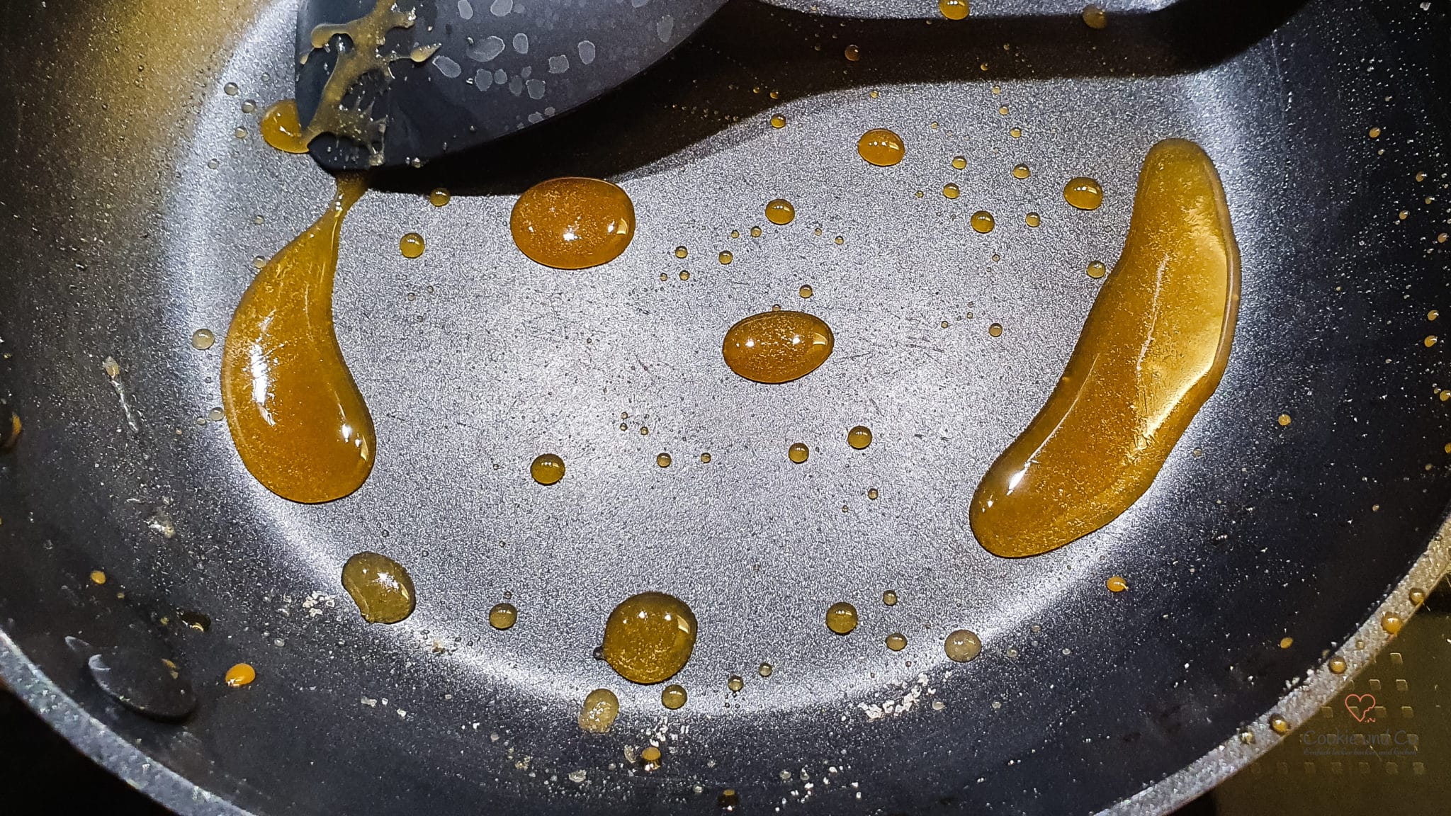 - Zucker unter ständigem Rühren in eine (Antihaft-) Pfanne schmelzen. (ich: Stufe 7 von 9)Wenn alles geschmolzen ist, goldgelb karamellisieren lassen.
