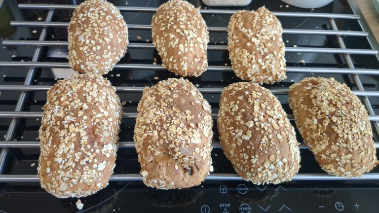 Jedenfalls sind die Müslistangen schön saftig und können auch hervorragend eingefroren und wieder aufgebacken werden. Auf diese Weise mache ich das mit meinen selbst gebackenen Brötchen meisten, denn so kann ich am Wochenende für das Frühstück verschiede Brötchensorten aufbacken und habe dann eine kleine Auswahl für jeden Geschmack.