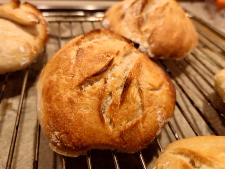 Diese No-Knead-Brötchen sind perfekt, für alle, die frische, selbstgebackene Brötchen ohne großen Aufwand genießen möchten. Probier dieses einfache Rezept aus und genieße den natürlichen Geschmack und die vielseitigen Einsatzmöglichkeiten dieser Brötchen. Ob zum Frühstück, als Snack oder zum Abendessen – diese Brötchen sind immer eine gute Wahl. Die Brötchen sind: