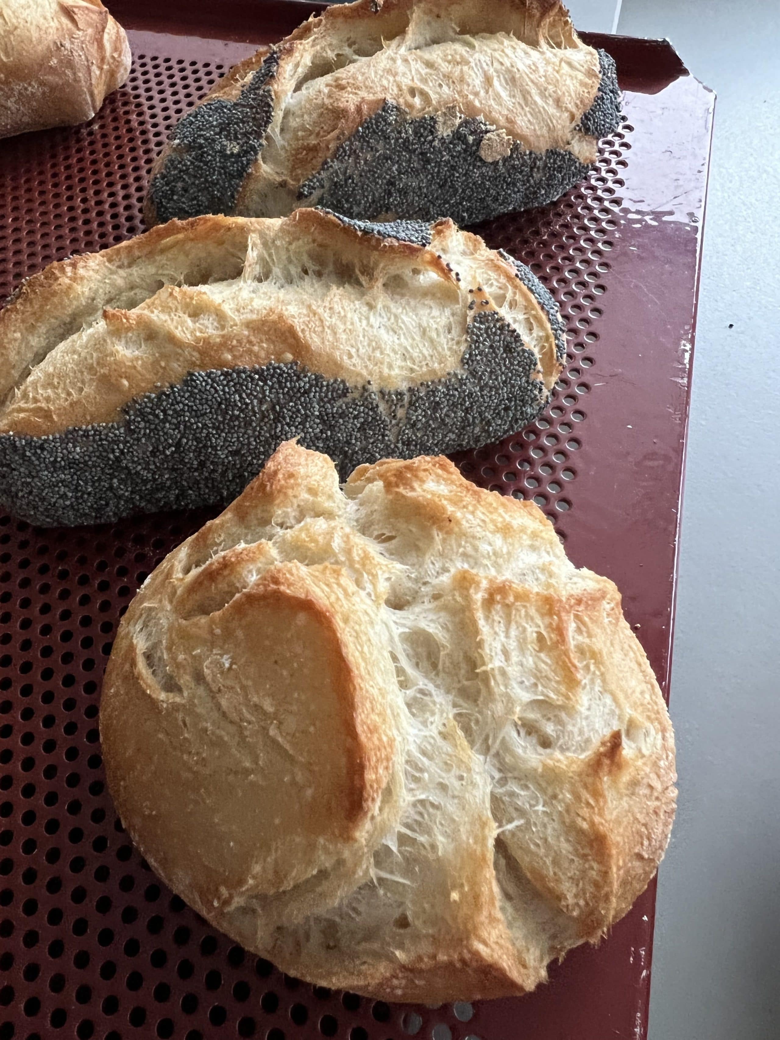 Ich hatte leider weder die Zeit zum dreimaligen dehnen und falten, noch hab ich das rundwirken auf den ersten Versuch richtig hin bekommen, aber außer, dass sie nicht perfekt rund sind, sind sie hervorragend gelungen! Und dank der top Anleitung zum lievito madre selbst ansetzen ist mir als noch recht unerfahrene Brotbäckerin selbst das gelungen. Knusprig, fluffig, super lecker.