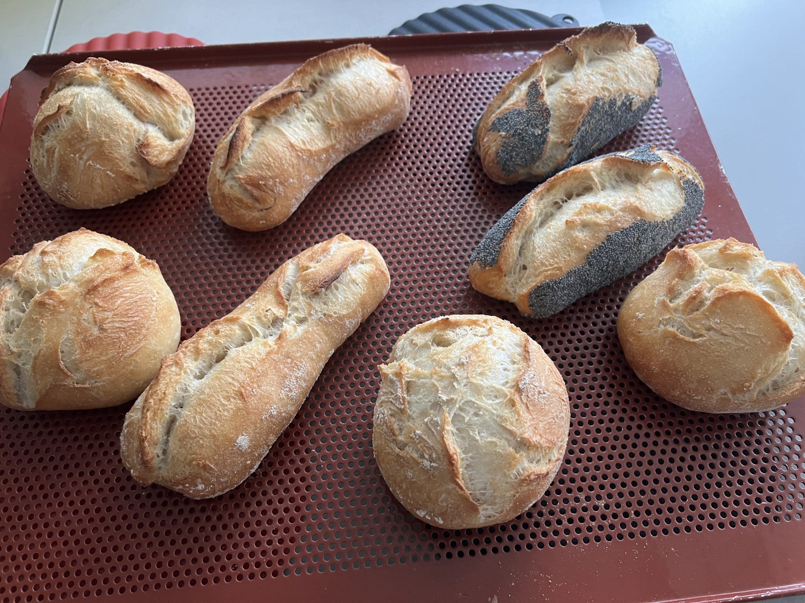 Hab die Brötchen heute gebacken. Getrieben mit Livieto Madre und 1g Hefe, da mein LM noch nicht perfekt triebstark ist. Mehl habe ich 550er Weizen und 1050er Dinkel genommen. Das Ergebnis war super! Vielen Dank für das tolle einfache Rezept. Durch No Knead und Übernachtgare bei Raumtemperatur sind die Brötchen auch perfekt für unsere kommenden Camping Urlaube.