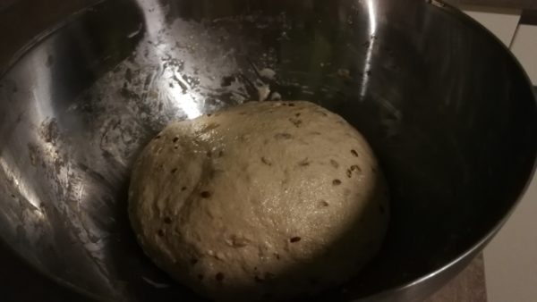 - Alle Zutaten mit der Hand verkneten und bei ca. 20–21 Grad Raumtemperatur abgedeckt stehen lassen.