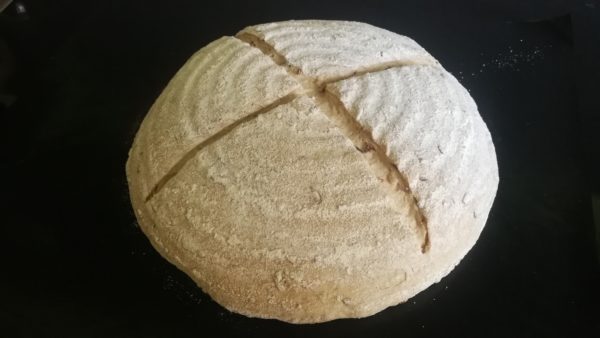 Super leckeres, einfach zu machendes Brot. Leider war mir nicht klar, ob ich das Einweichwasser für die Saaten von der Haupt-Wassermenge abziehen muss, hatte also erstmal ziemliches „Gebrösel“ in der Schüssel, bis ich endlich einen brauchbaren Teig hatte. 24 Stunden bei Raumtemperatur gegangen und noch toller Ofentrieb. Dieses Brot wird es noch öfter geben!