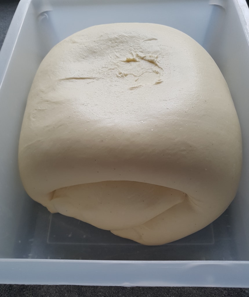 - Abgedeckt für 3−4 Stunden bei Raumtemperatur (20−22 °C) gehen lassen oder für ca. 1,5−2 Stunden bei 25−27 °C. Der Teig sollte sich dabei mindestens verdoppelt haben.