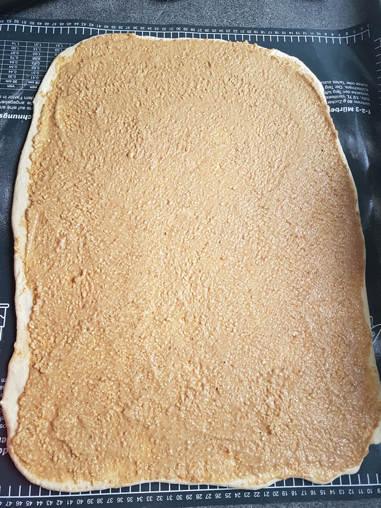 Meine Nussmischung war zwar (wie ich nachträglich auch im Vergleich mit deinen Bildern sehen konnte) etwas zu fest geraten, da würde ich demnächst mit etwas Sahne oder so für bessere Verteilbarkeit sorgen, aber das Geschmacksergebnis war genial!