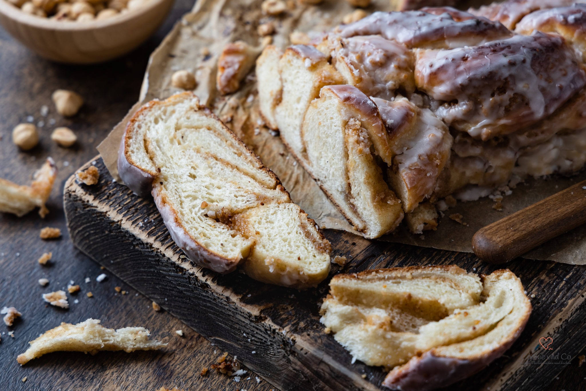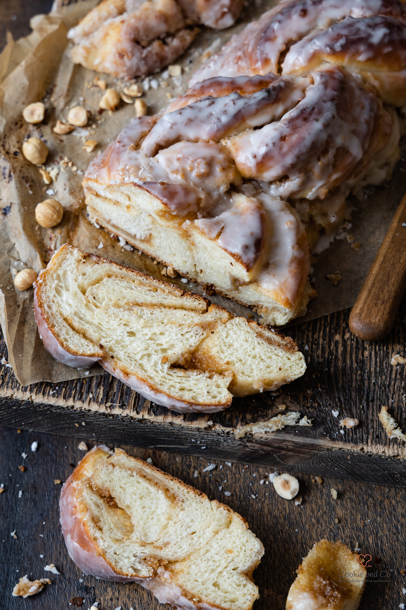 Der Nusszopf besteht aus süßem Hefeteig und ist mit einer ganz einfachen, aber total leckeren Füllung aus gerösteten Haselnüssen und Schmand gefüllt. Natürlich darf hier auf keinen Fall Zimt fehlen. Ein Hauch Tonkabohne und ordentlich Vanille runden das ganze geschmacklich perfekt ab.