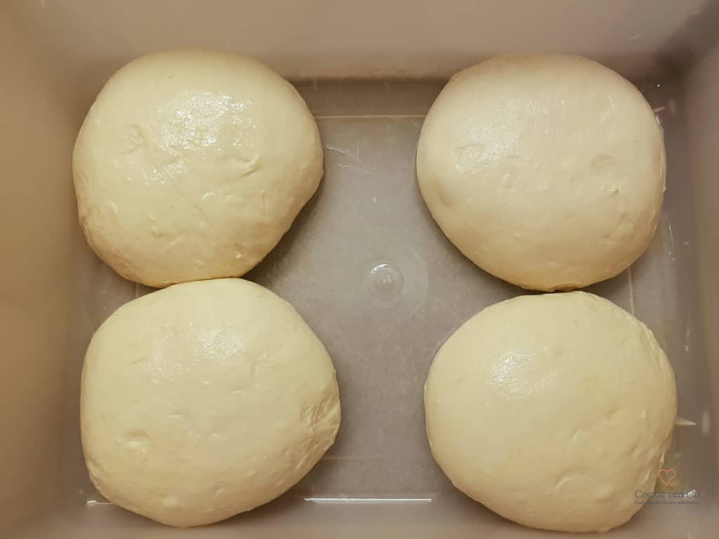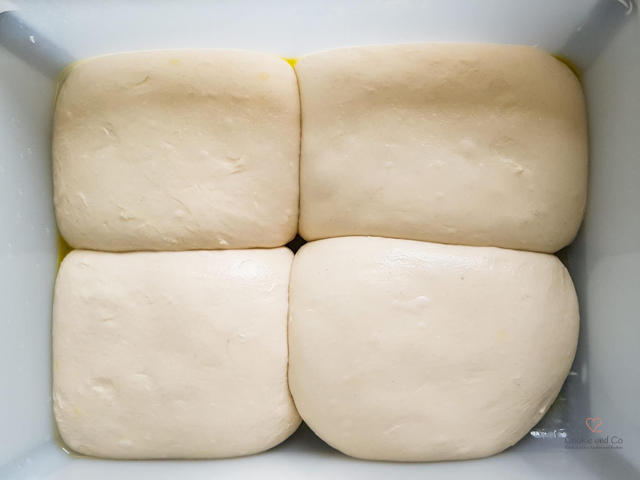 - Anschließend den Teig in 4 gleich große Teiglinge teilen.