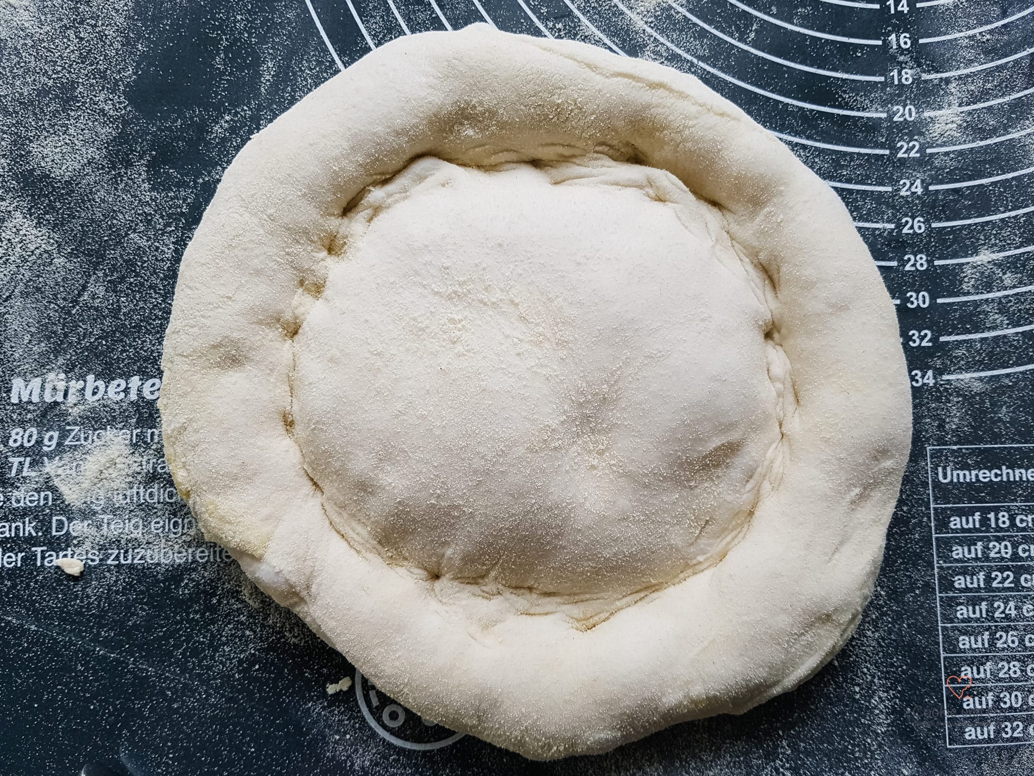- Vorsichtig ringsherum mit den Fingerspitzen einen Rand abdrücken.