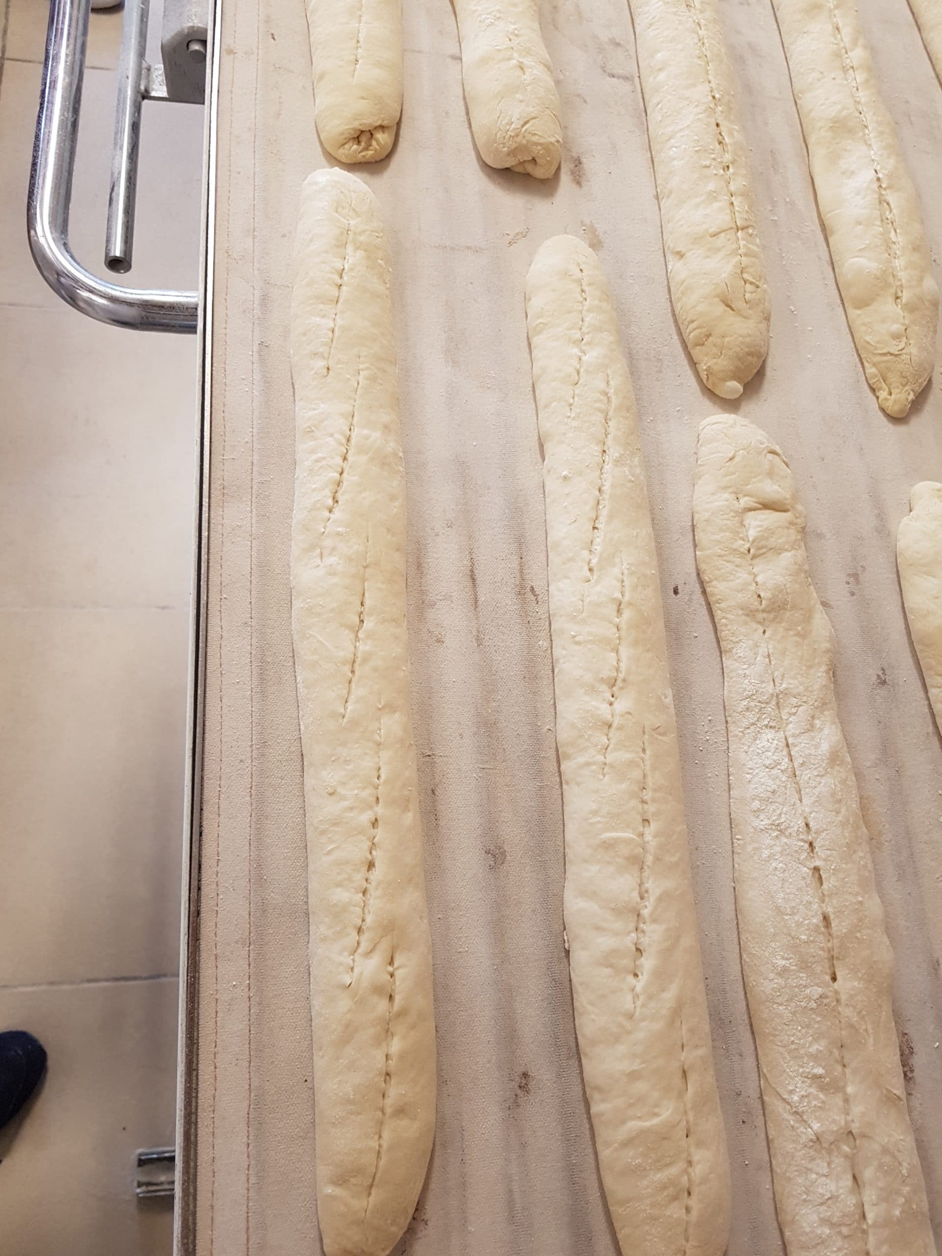 Letzten Frühling nahm ich mit einigen bekannten Gesichtern aus der Brotbackszene an einem Backtraining bei einem der besten Bäcker Frankreichs teil: Maxime Debat. Ein paar Eindrücke der Reise findest du bei meinem Tourte de Meule Rezept. Natürlich haben wir dort auch jede Menge Baguette gebacken. Ein regelrecht einschneidendes Erlebnis war für alle, wie wenig zart der Baguetteteig bei der Aufarbeitung behandelt wurde und wie schön luftig trotzdem nachher die Krume war.