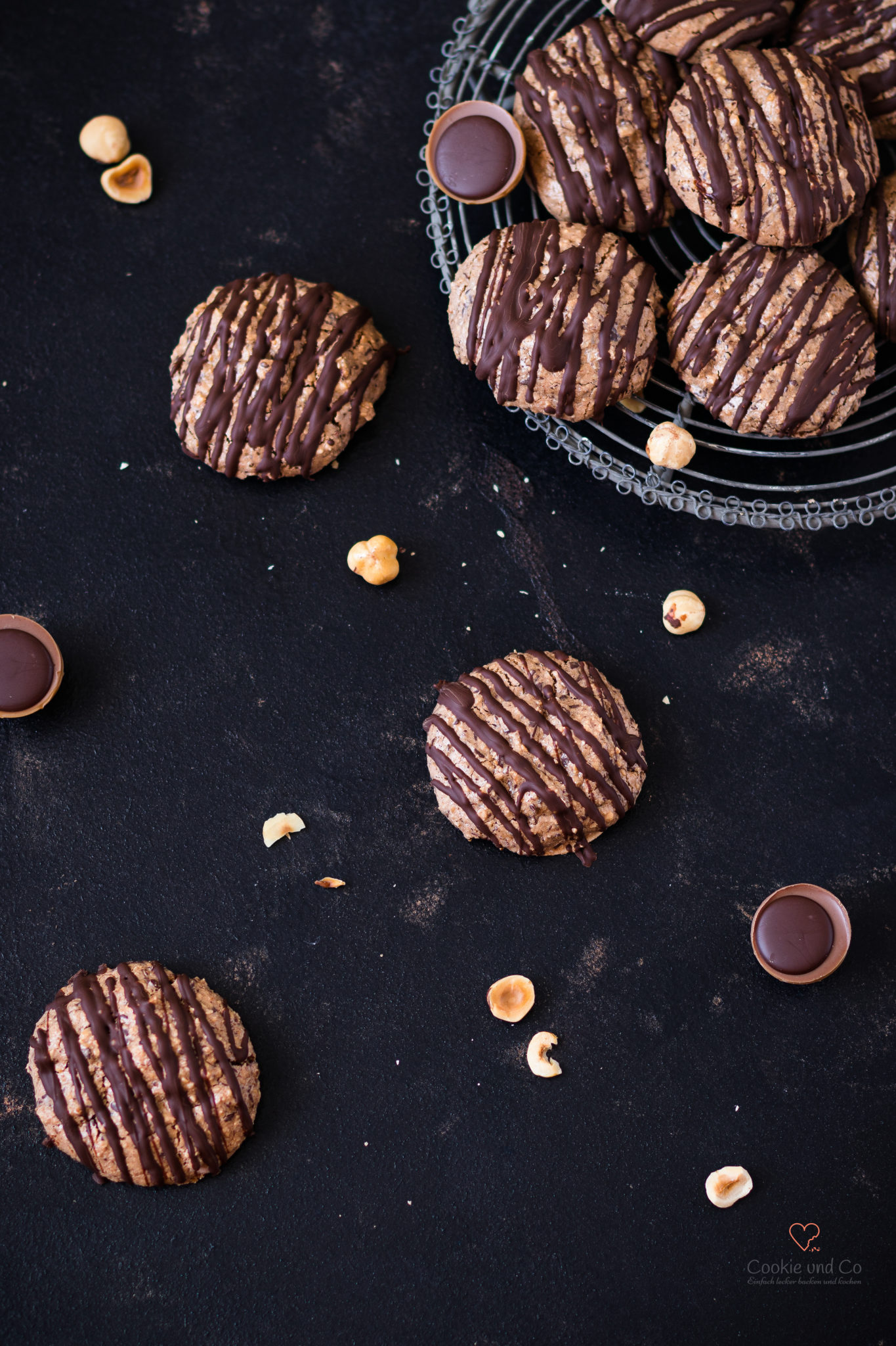 Makronen in allen Varianten gehören bei uns an Weihnachten zu den beliebtesten Gebäcksorten überhaupt. Sehr lecker und saftig sind übrigens auch meine Pina Colada Makronen. Kennt ihr die schon? Dieses Jahr wollte ich aber mal etwas Neues. Und die Toffifees passen richtig gut mit der Kombination aus Schokolade und Haselnüssen zusammen. Die Toffifee-Füllung gibt diesen Schoko-Nuss-Makronen noch eine leichte Karamell-Note und die Nuss in der Mitte sorgt zusätzlich für etwas für Crunch. In einer Keksdose aufbewahrt, bleiben sie außerdem lange frisch und saftig. Vorausgesetzt, sie werden nicht sofort allesamt aufgefuttert. ♥