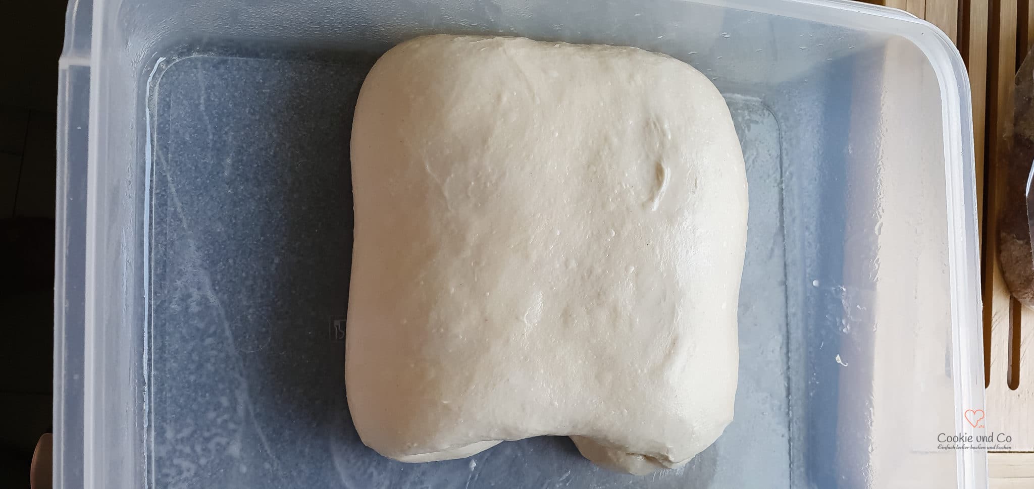 - ODER: Den Vorteig für ca. 3−4 Stunden bei Raumtemperatur anspringen lassen. Anschließend für 12−16 Stunden in den Kühlschrank geben.