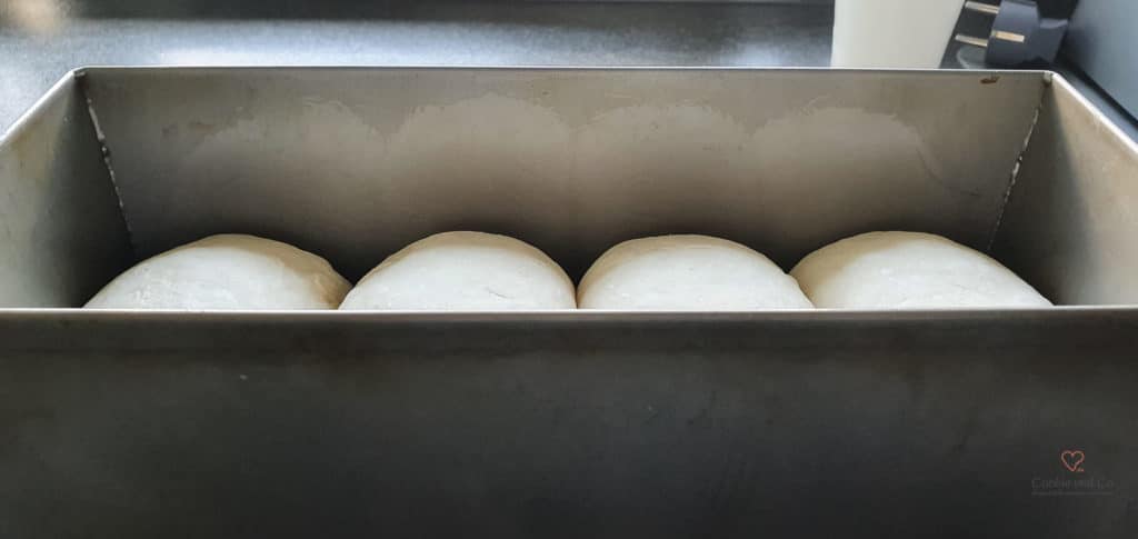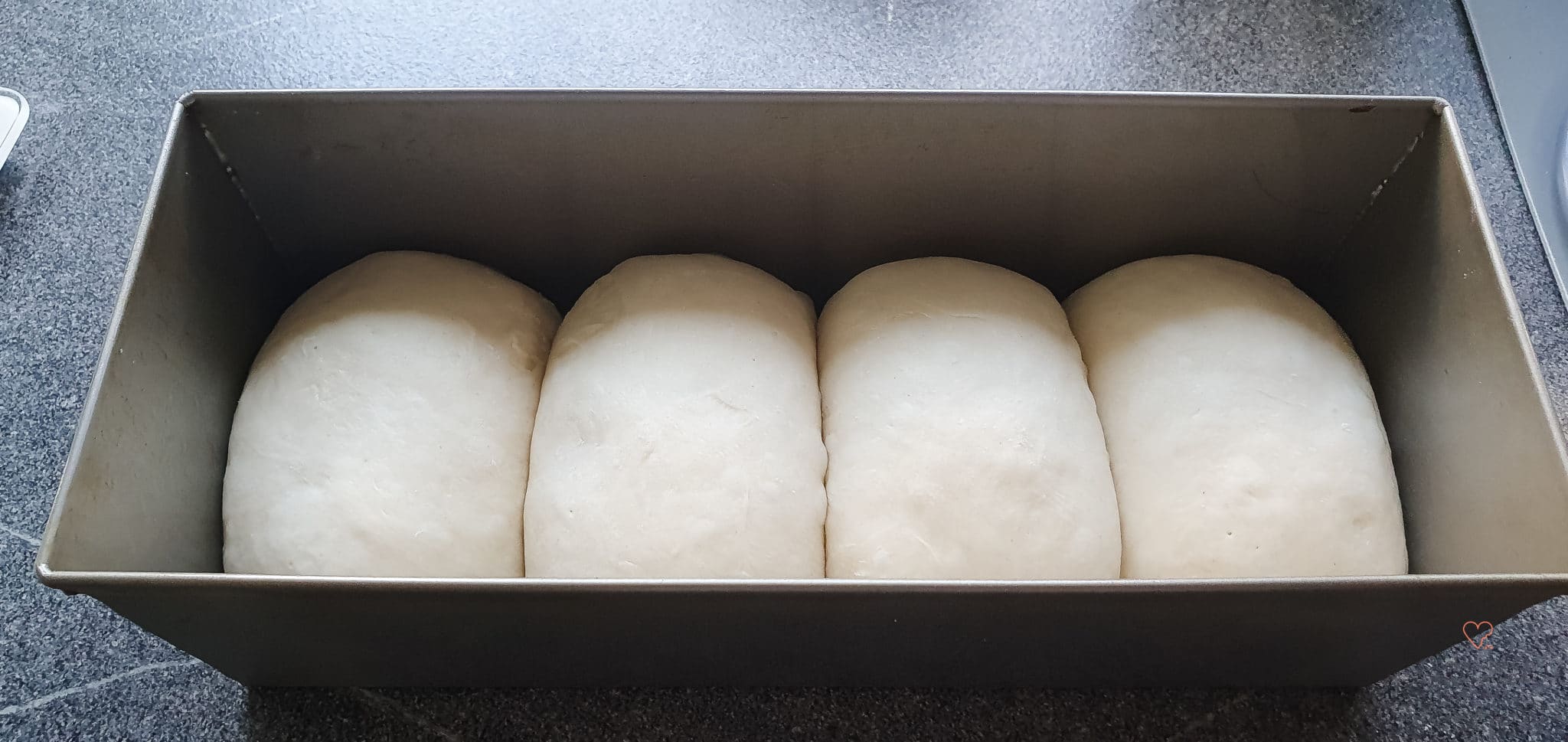 - Danach den Teig zu 4 möglichst gleichgroße Teiglinge teilen.