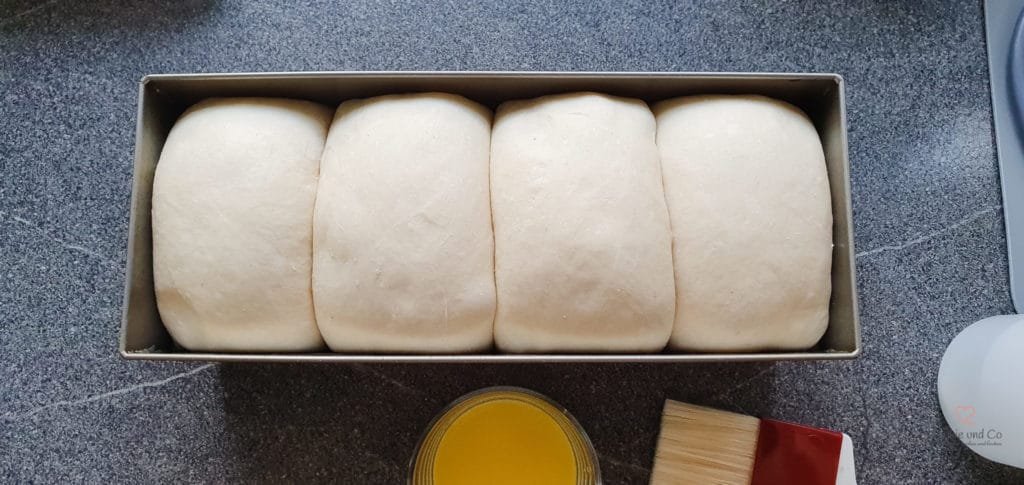- Die Teiglinge sollten zum Ende der Stückgare möglichst Vollgare haben und mindestens den Rand der Form erreicht haben, eher etwas darüber hinaus reichen.