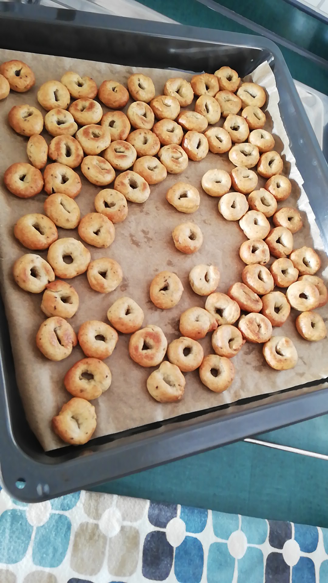 Hallo, ich habe die Taralli heute zum ersten Mal gemacht und da ich keinen Sauerteig hatte, habe ich ein wenig frische Hefe dazu gegeben. Als Gewürz hatte ich Fenchel ausgewählt.