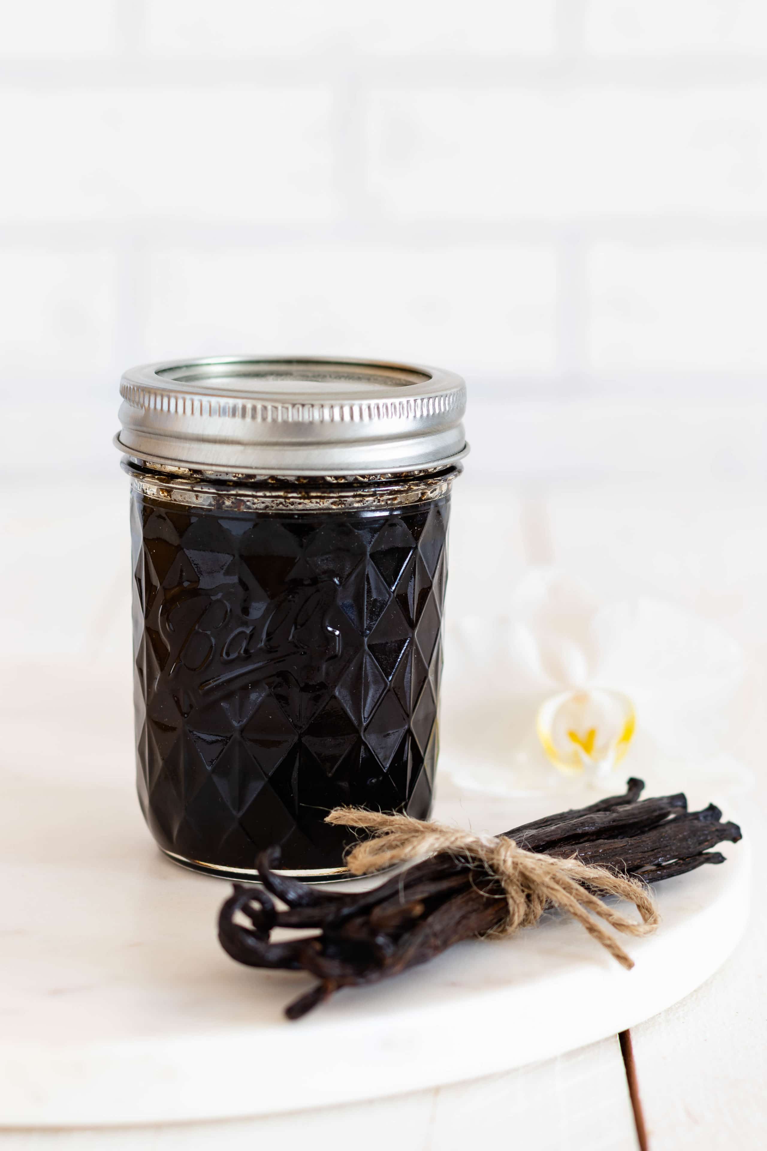 - Jetzt ist der Vanilleextrakt fertig und hält an einem dunklen, kühlen Ort für viele Monate. (Ich lagere ihn griffbereit im Kühlschrank.)