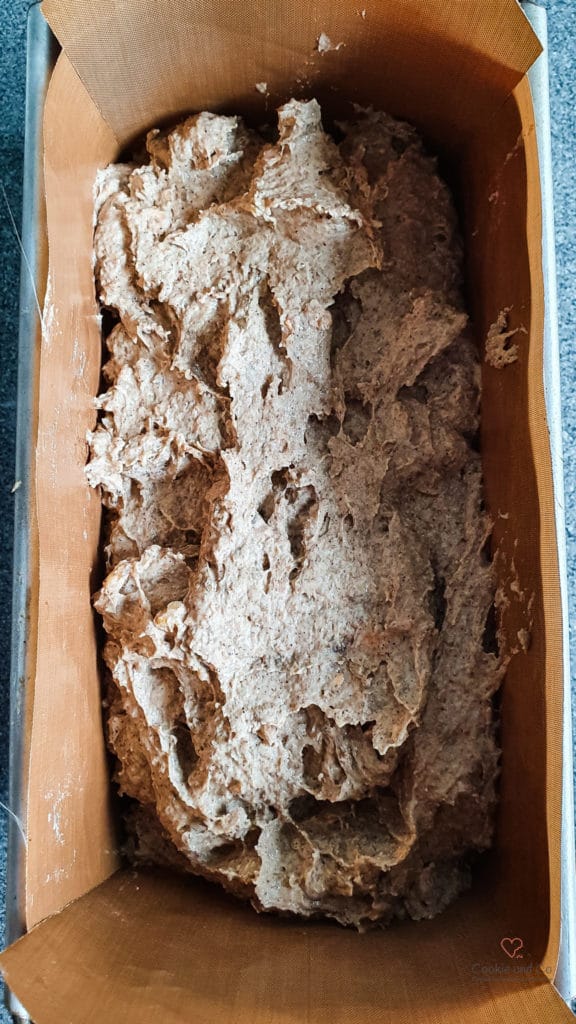 Die eigentliche Arbeitszeit ist bei diesem Brot wirklich gering. Immer wenn ich feststelle, dass unser Brotvorrat zur Neige geht und wir Brot benötigen, wird diese Art von Kastenbrot zubereitet. Dabei haben sich mit der Zeit einige Lieblings-Varianten herauskristallisiert, die nach und nach hier auf Cookie und Co erscheinen werden.