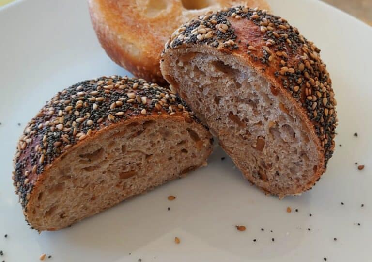 - Autolyseteig: Wasser, Joghurt und Weizenmehle für 1 Min. | Teigknetstufe mischen, danach für 30−60 Minuten in den Kühlschrank stellen.