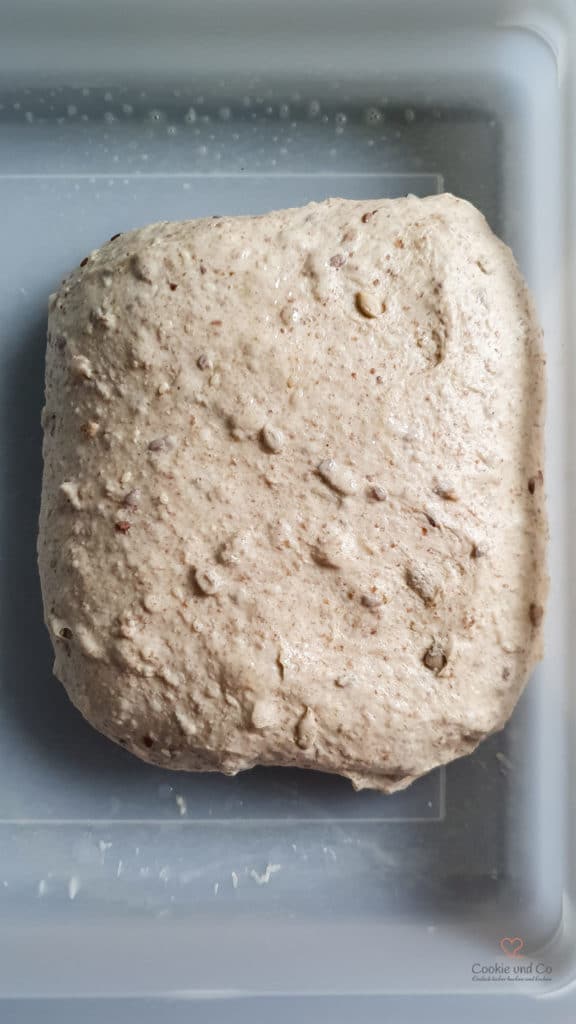 - Nach 1 und 2 Stunden dehnen & falten (Coil fold). Der Teig sollte sich dabei knapp verdoppelt bis verdoppelt haben.