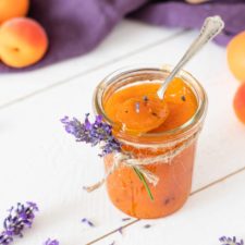 Keyword Aprikosen, Aprikosenkonfitüre, Aprikosenmarmelade, einfach, einkochen, Frankreich, französisch, Frühstück, glutenfrei, lactosefrei, Lavendel, Marmelade, Thermomix, vegan