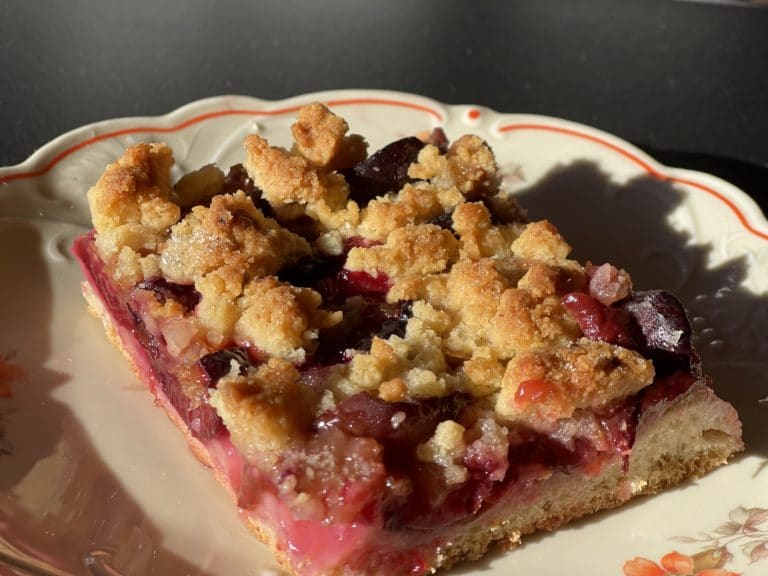 - Ich serviere den Zwetschgenkuchen mit Streusel am liebsten mit geschlagener Sahne.